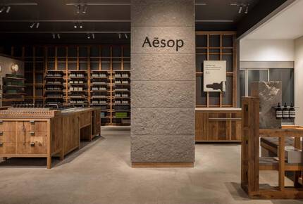 The second incarnation of Aesop Sapporo Stellar Place is a meditation on reuse. Designed with longstanding collaborator Hugo Haas, the original store’s materials are reinterpreted into a serene space of soft grey Sapporo Nanseki stone, mined in the city’s South Ward—the residue of a volcano that erupted 40,000 years ago—and Japanese timber salvaged from deconstructed houses in Hokkaido. The one new material that was introduced, stainless steel, was employed for its water resistance in wet areas and for its strength in a reversible fixation system that allows for future reuse of the stone panels. Learning from the difficulties of prizing glued stone away from the walls of the original Sapporo store, we resolved to not use any glue in the construction of this incarnation.