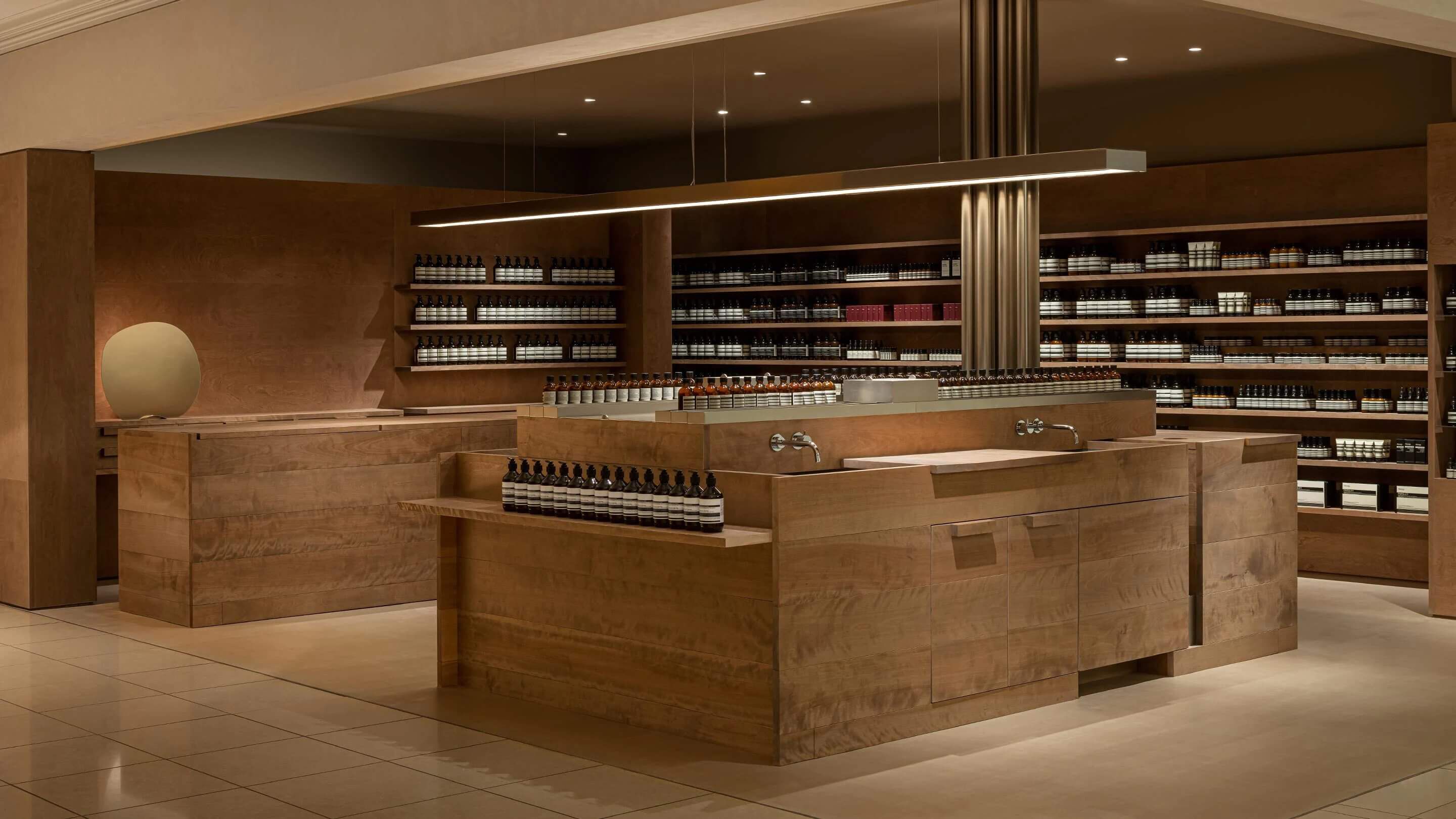 Situated between the Outer Gardens of the Imperial Palace and bustling Tokyo Station, Aesop Shin-Marunouchi is a place of tranquil focus. The tectonic volumes of Adolf Loos’s Villa Müller in Prague, built in 1930, inspired our in-house designers in their approach to Japanese birch.