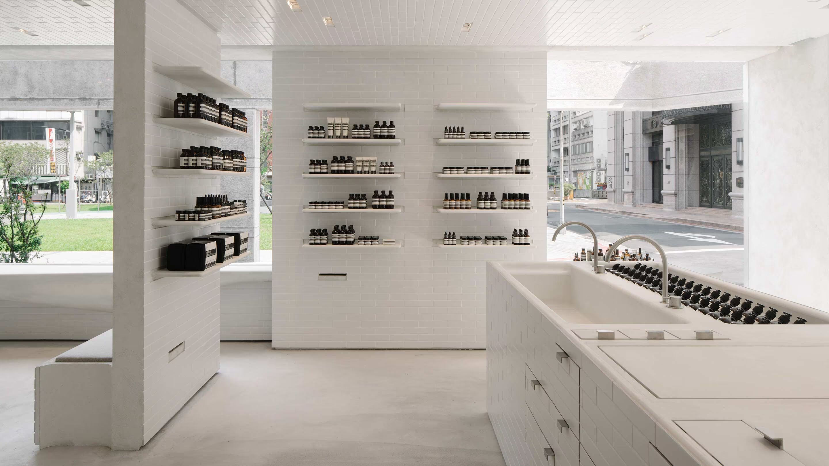 Our second signature store in Taipei exploits subtle contrasts to explore the tension between nature and urban environments. Conceived in partnership with Mlkk Studio, the space occupies a corner site in a tranquil street, and draws inspiration from the ubiquitous ceramic tiles seen on the city’s storefronts, apartment buildings and pavements.